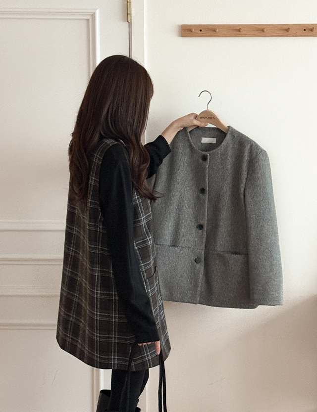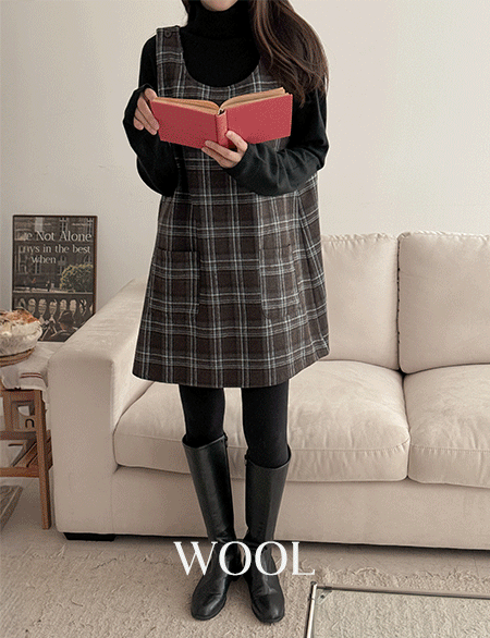 레빗츠 포켓 格紋 羊毛 뷔스티에 洋裝 85596