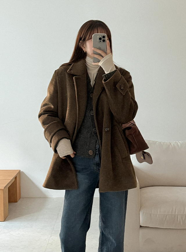 러스릿 羊毛 양기모 平底鞋 開襟外套 85581