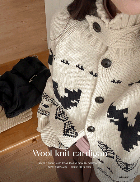 제라 北歐 圖案 高領 羊毛 針織 開襟外套 85604