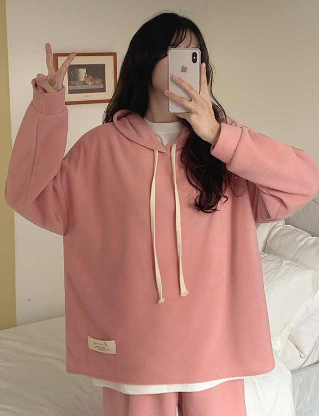 가볍고따뜻해 寬鬆 搖粒絨 衛衣 褲 套裝 85545