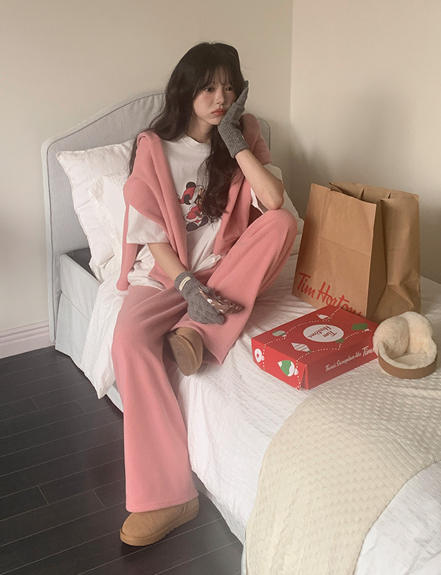 가볍고따뜻해 寬鬆 搖粒絨 衛衣 褲 套裝 85545