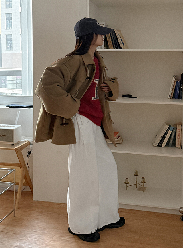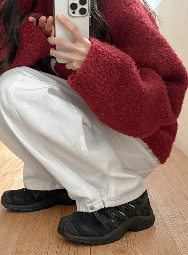 라미 겉기모 사이드 절개 鬆緊腰 2WAY 寬褲 85616