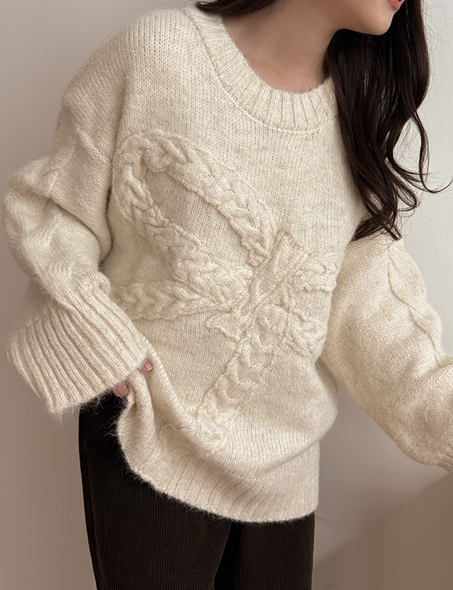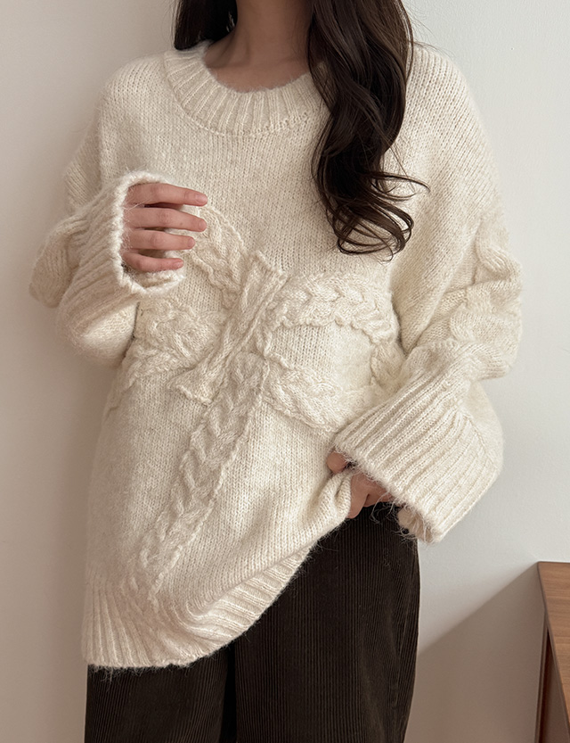 러빙리본 圓領 寬鬆 羊毛 針織 85620