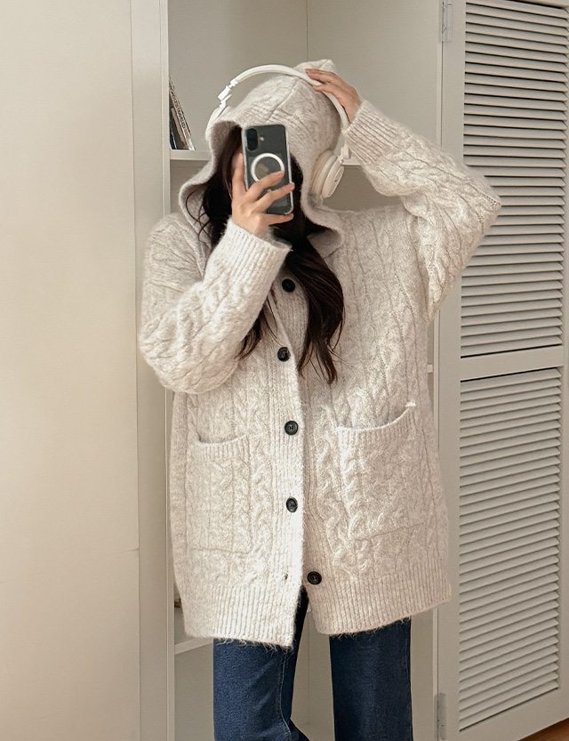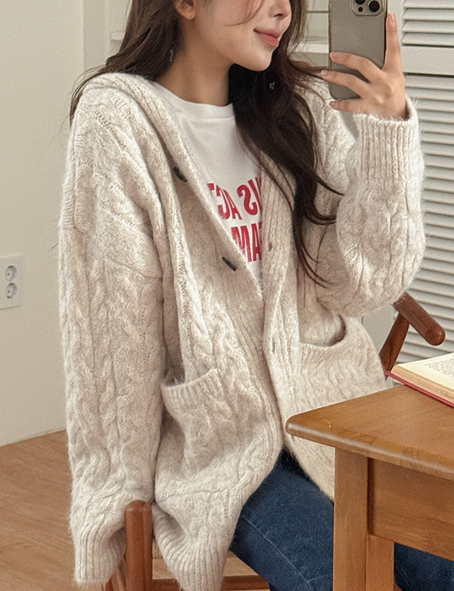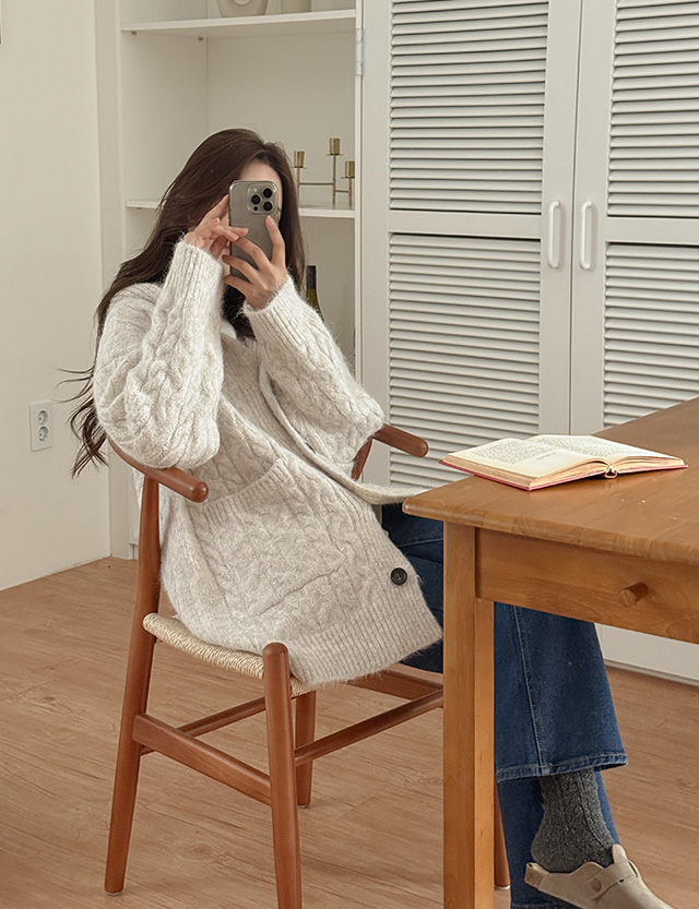 플팅 寬鬆 모헤어 麻花型 衛衣 開襟外套 85657