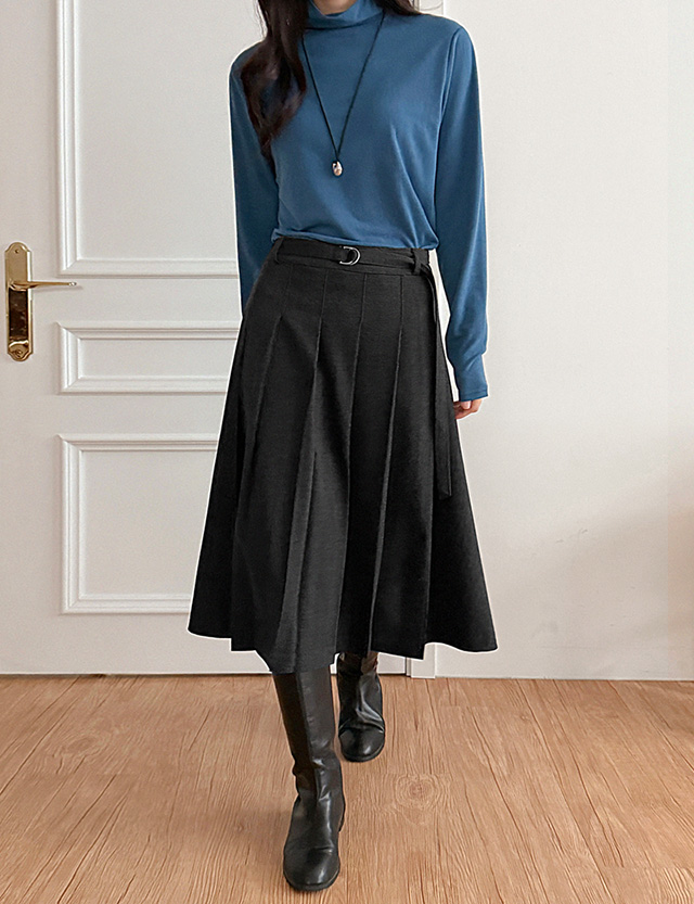헤노 束腰 鬆緊腰 百褶 長裙 85611
