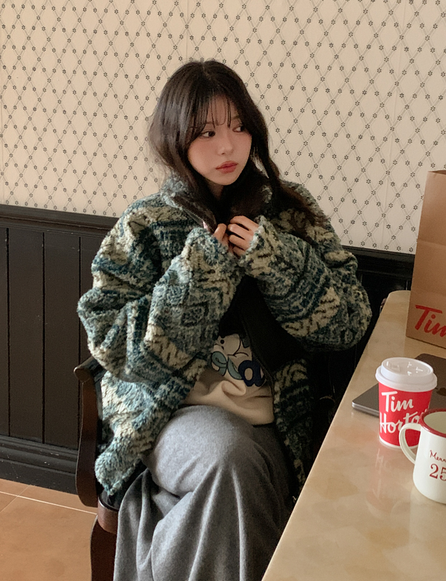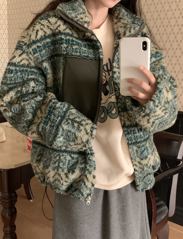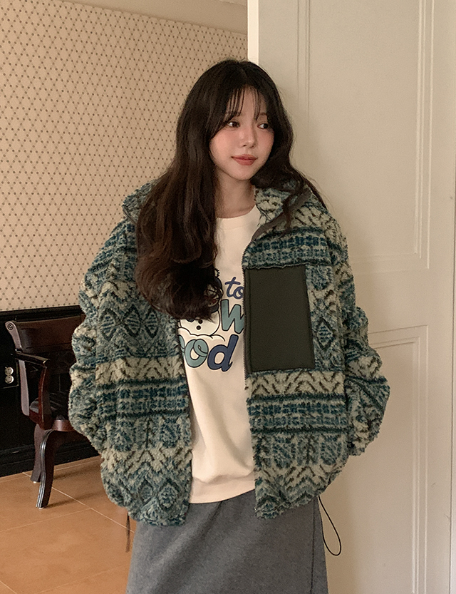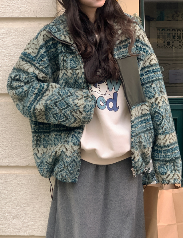 멘트리 寬鬆 北歐 搖粒絨 拉鏈外套 85555