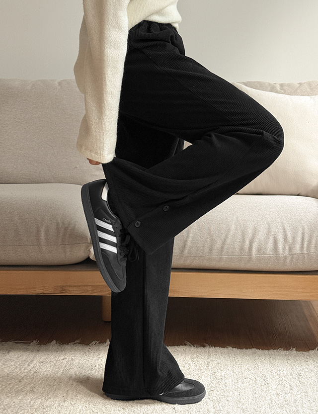 베키 鬆緊腰 加絨 鈕扣 燈芯絨 喇叭 褲 85660