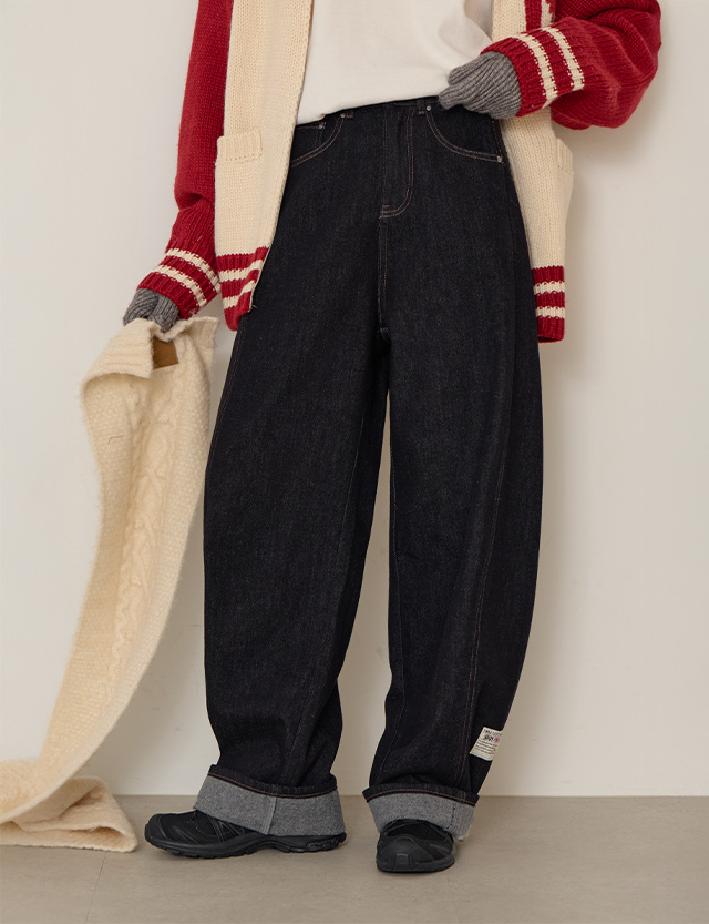 모니즈 논페이드 鬆緊腰 蓬蓬裙 加絨 牛仔 褲 85645