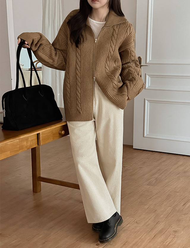 센바 高領 麻花型 2WAY 拉鍊毛衣 85578