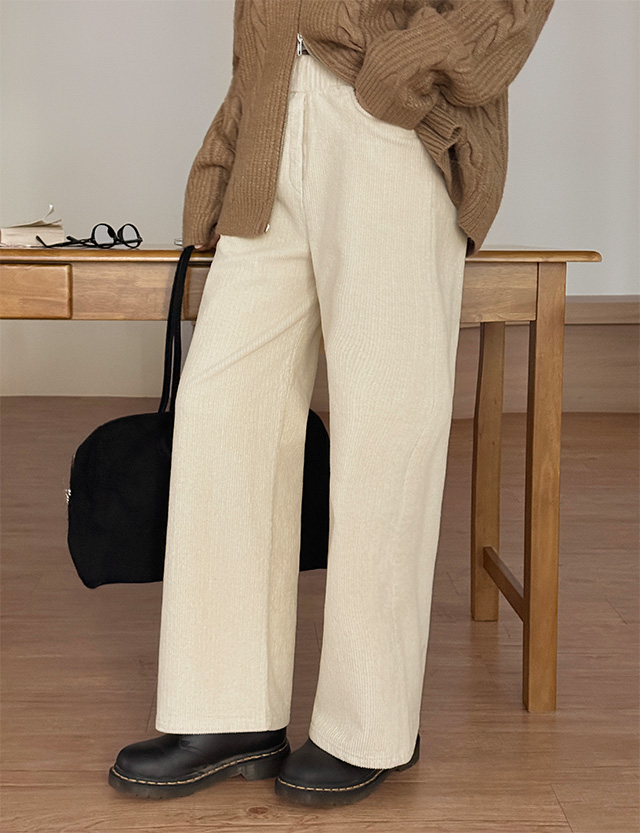베린트 鬆緊腰 燈芯絨 加絨 寬 直筒 褲 85579