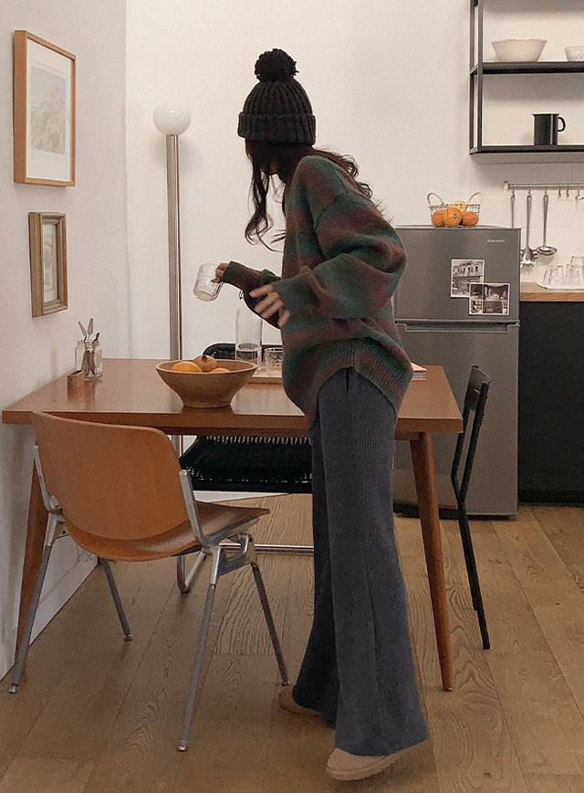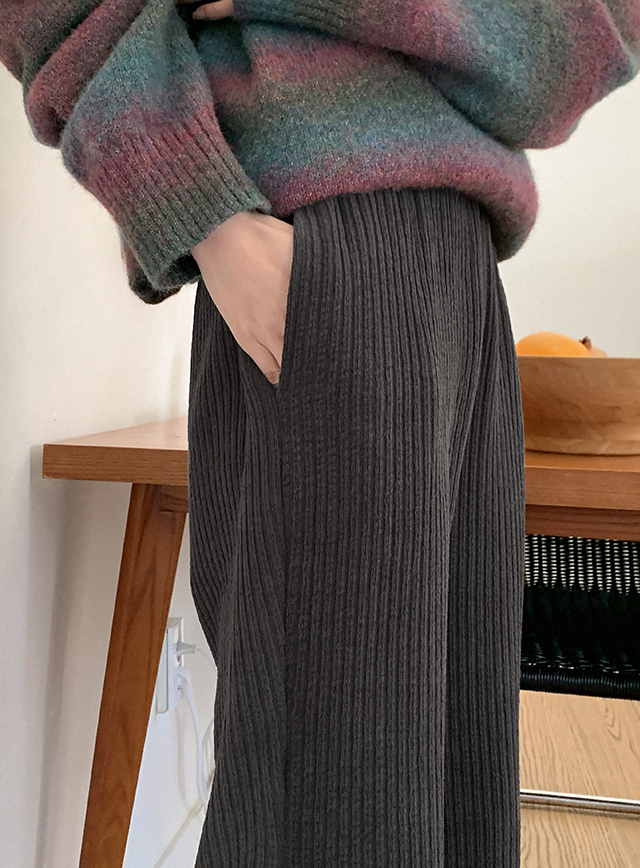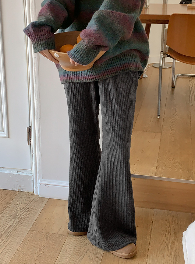 쿠크오 羅紋 喇叭 彈力 鬆緊腰 褲 85538