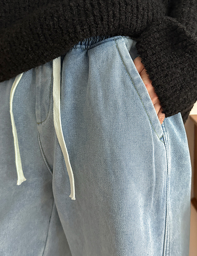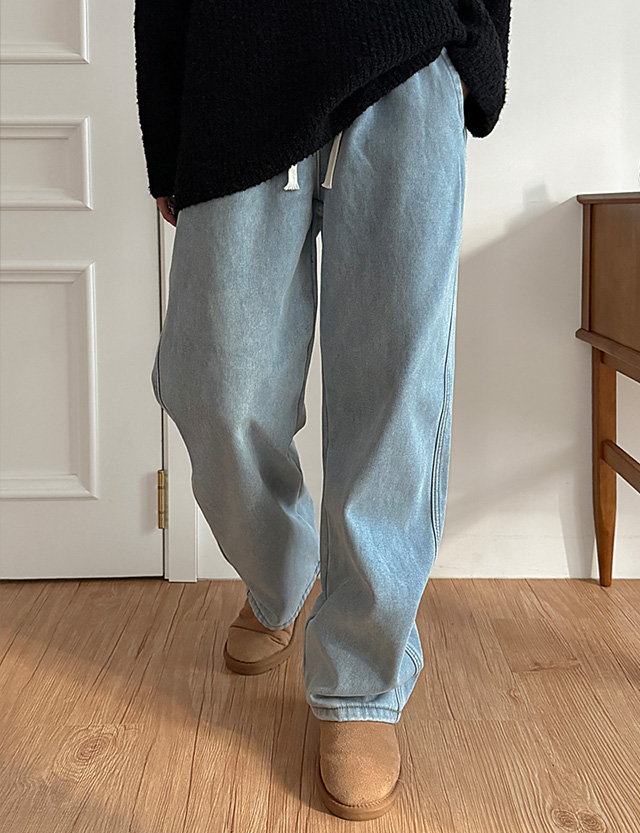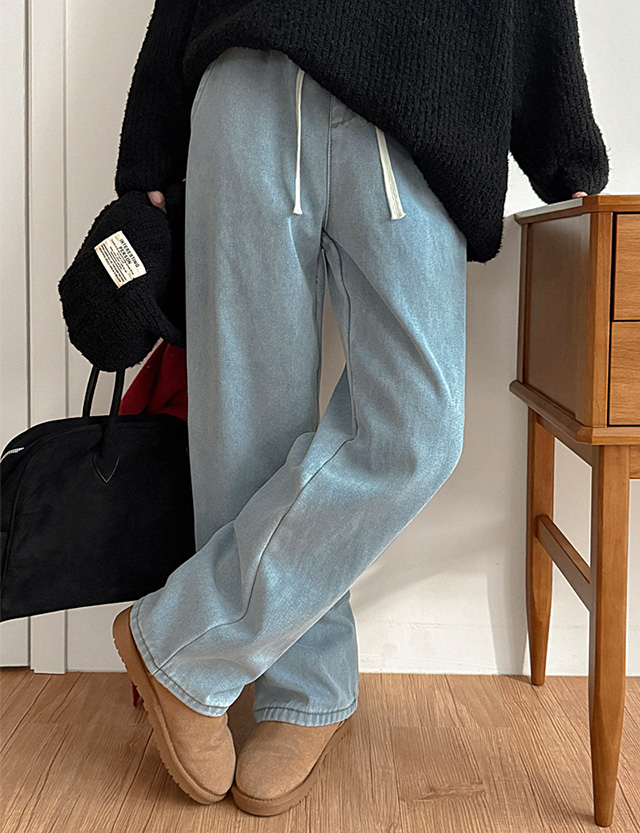 라비 속기모 웜 鬆緊腰 세미와이드 牛仔褲 85597