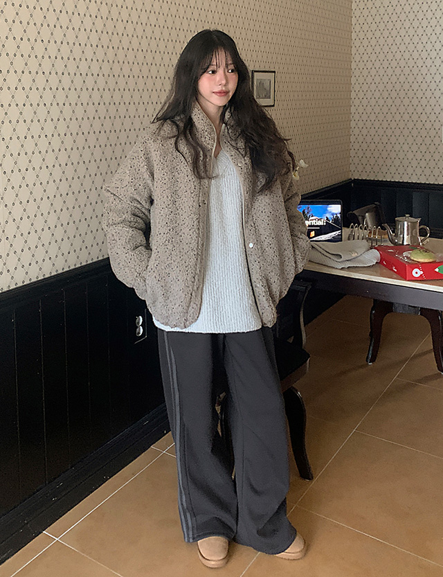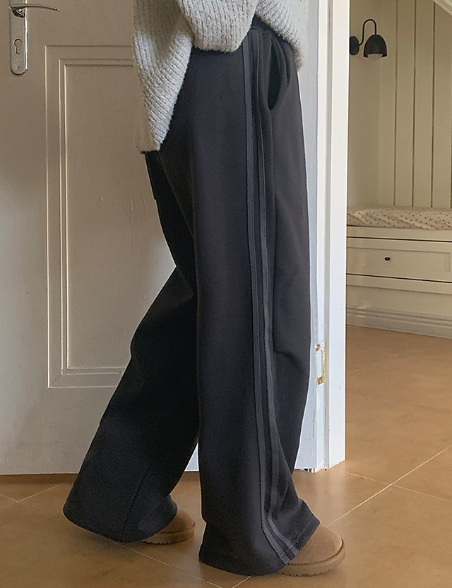 칸츄 加絨 鬆緊腰 寬 트랙 褲 85552