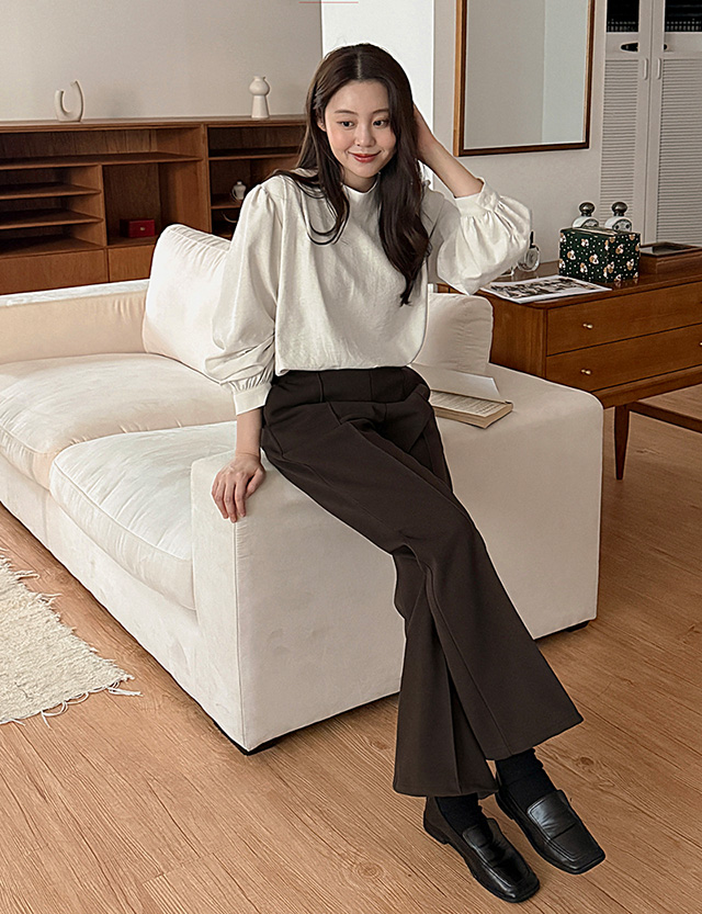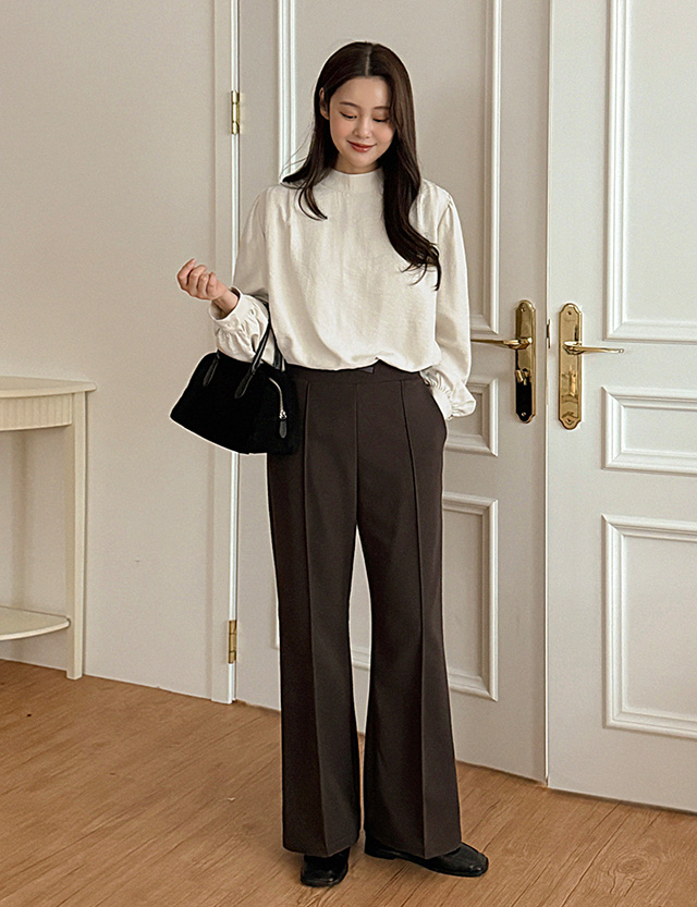 완벽한 깔끔핏 加絨 鬆緊腰 修身 喇叭 褲 85681