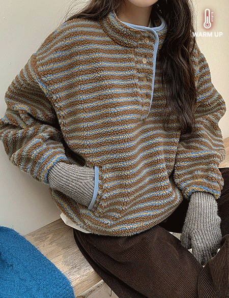 프리첼 配色 條紋 搖粒絨 運動衫 85749