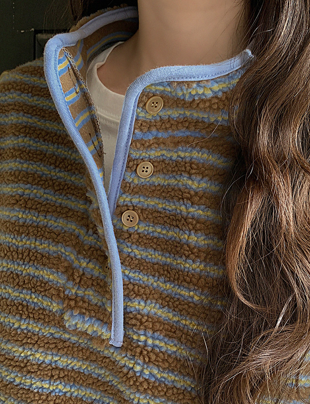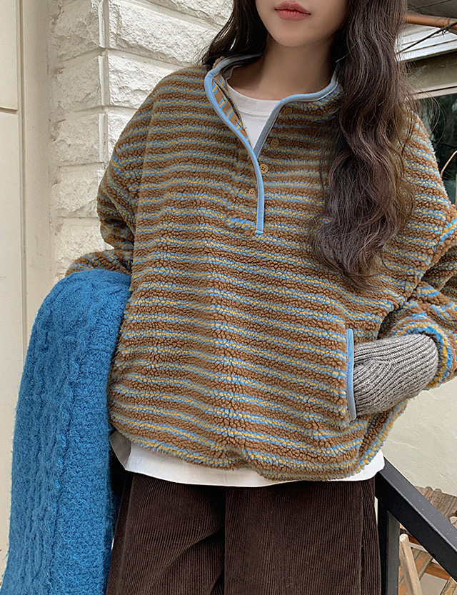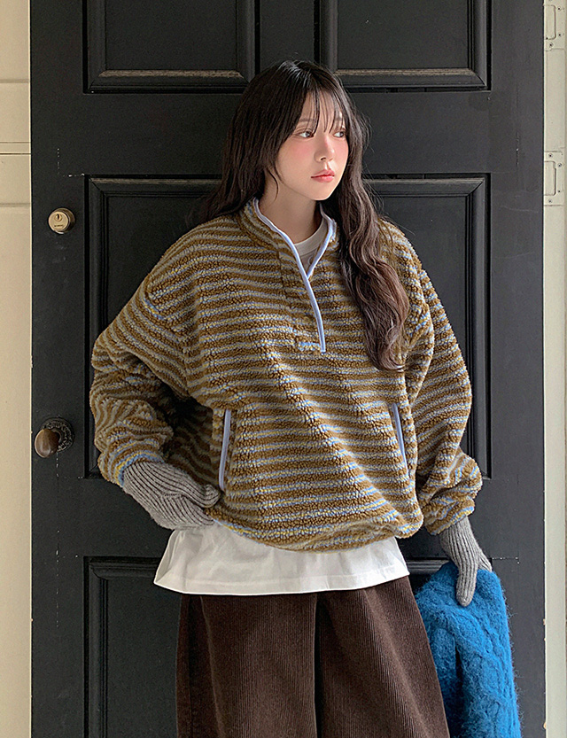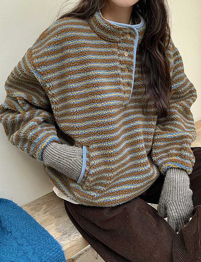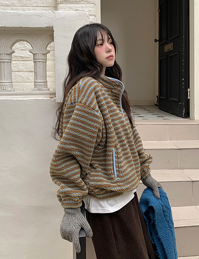프리첼 配色 條紋 搖粒絨 運動衫 85749