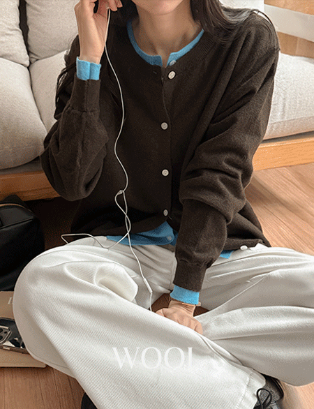 히라 分層 配色 羊毛 針織 開襟外套 85709