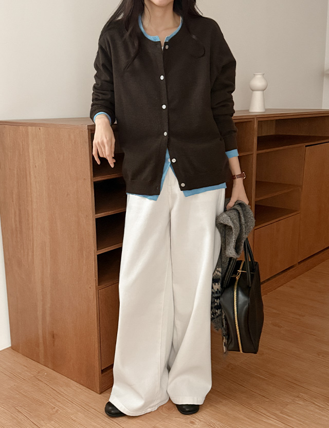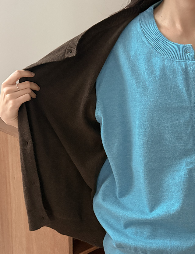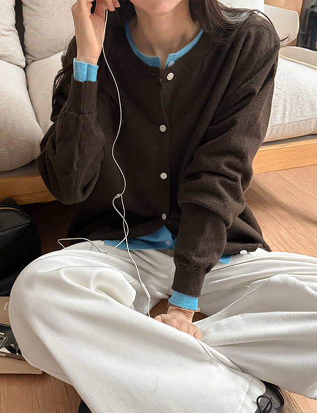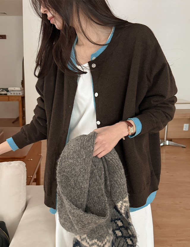 히라 分層 配色 羊毛 針織 開襟外套 85709