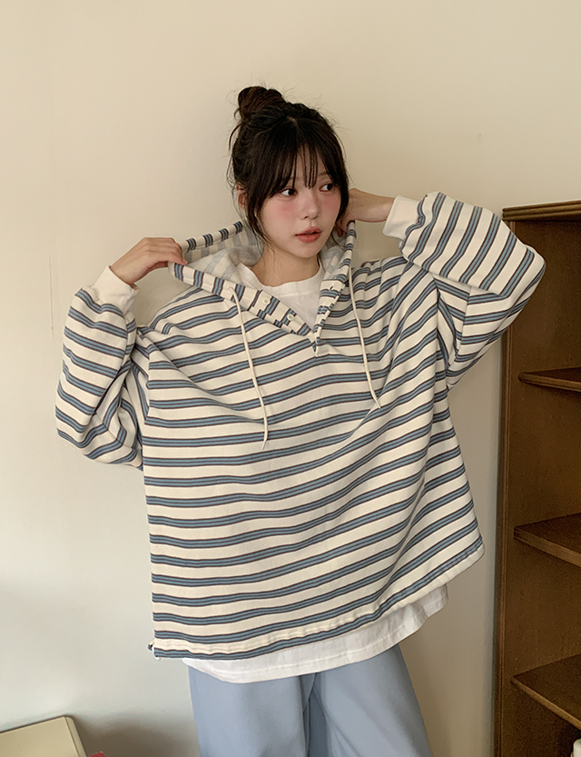 치로 配色 條紋 속기모 衛衣 T恤 85743