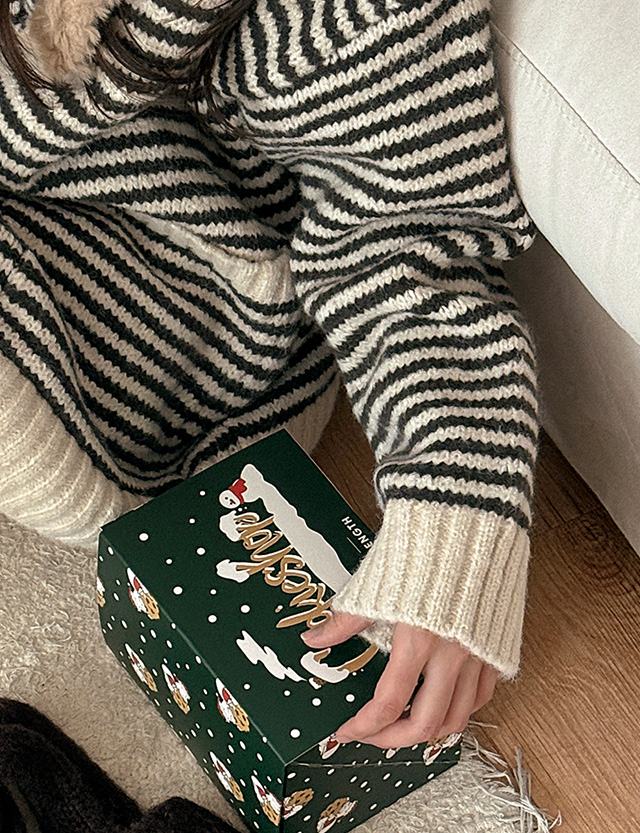 뉴셀 寬鬆 條紋 高領 開襟外套 85764