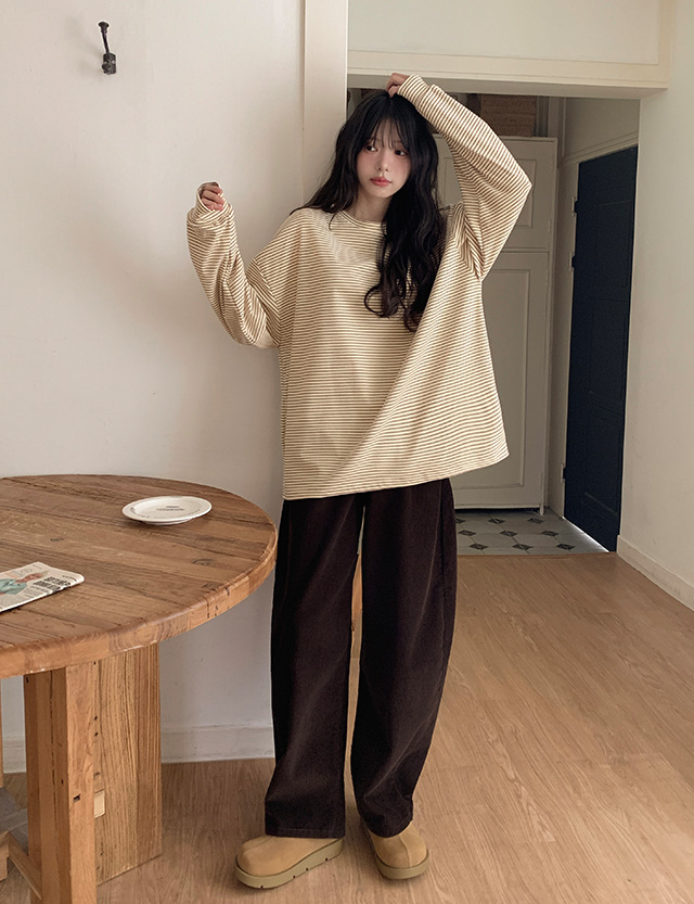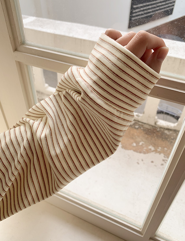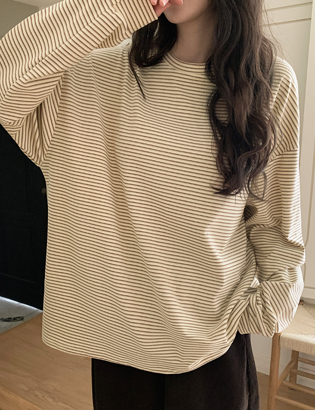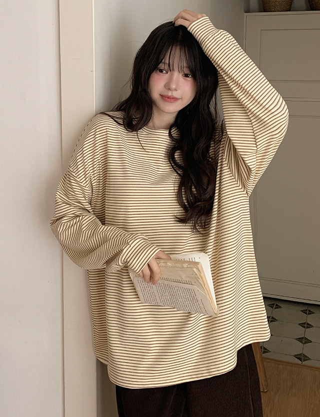 매지컬 配色 條紋 양기모 長袖 T恤 85731
