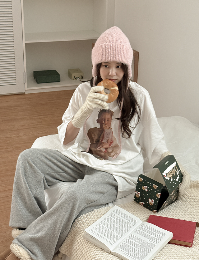 [2가지기장]인틴 鬆緊腰 밍크기모 寬褲 85755