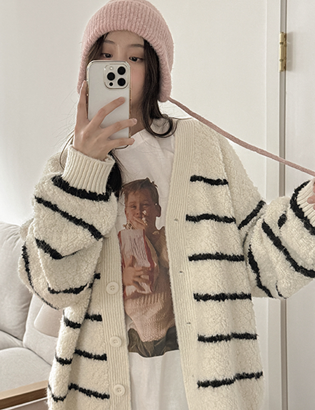 럽윤 羊駝毛 단가라 羊毛 v 開襟外套 85753