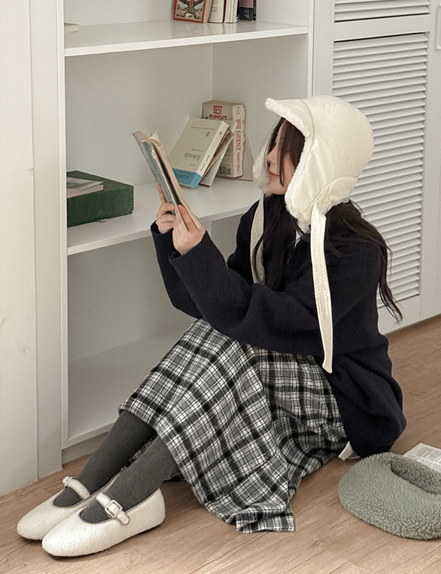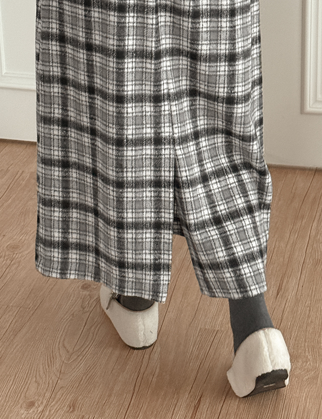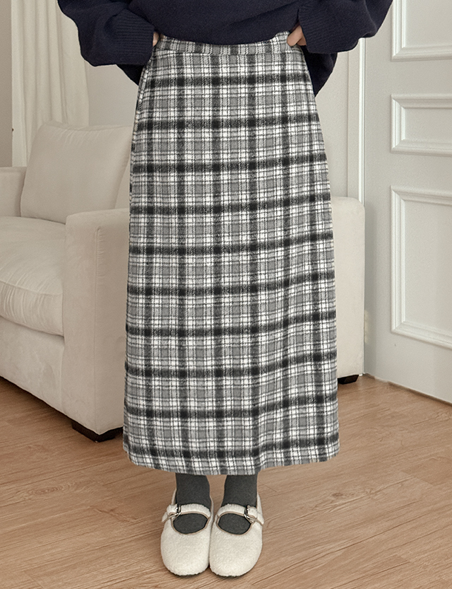크렘드 鬆緊腰 겉기모 格紋 長裙 85648