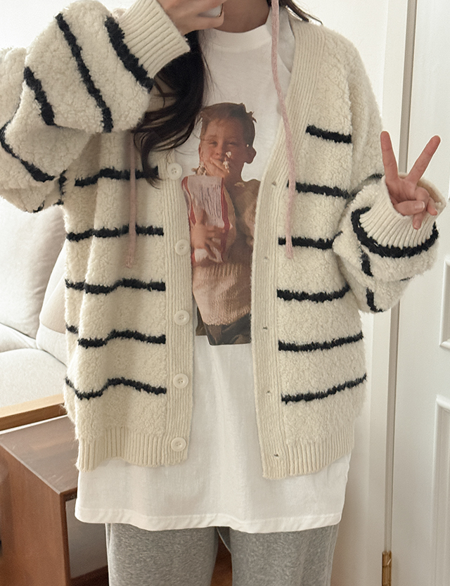 럽윤 羊駝毛 단가라 羊毛 v 開襟外套 85753