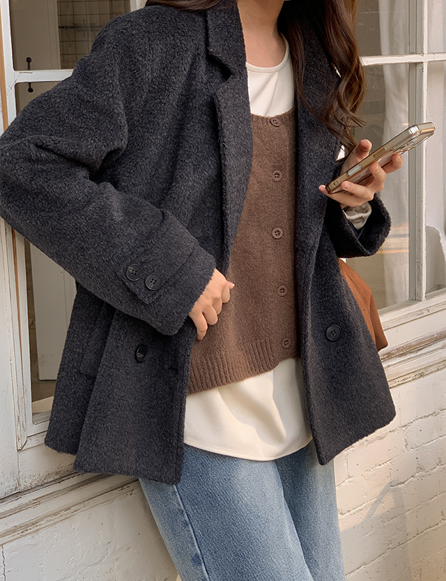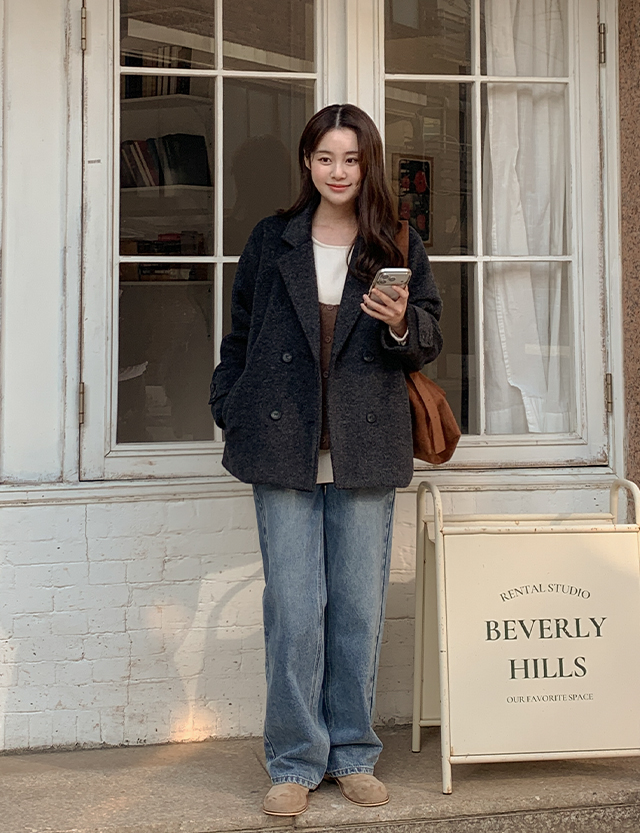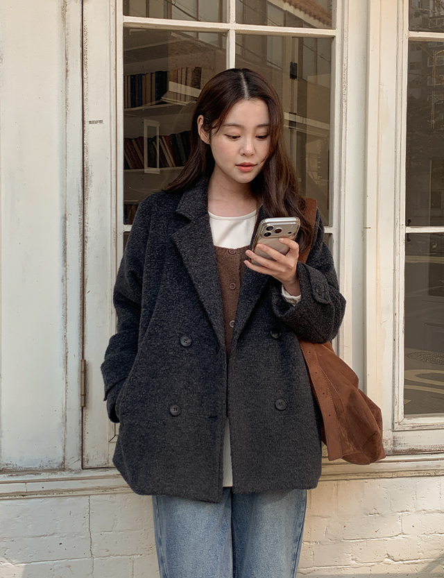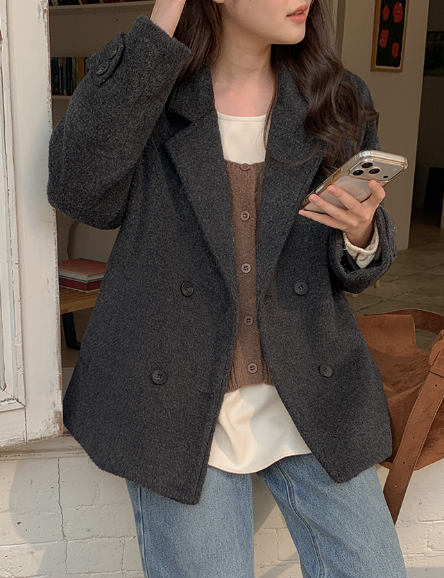 큐디스 보카시 雙排扣 短版 羊毛 外套 85836