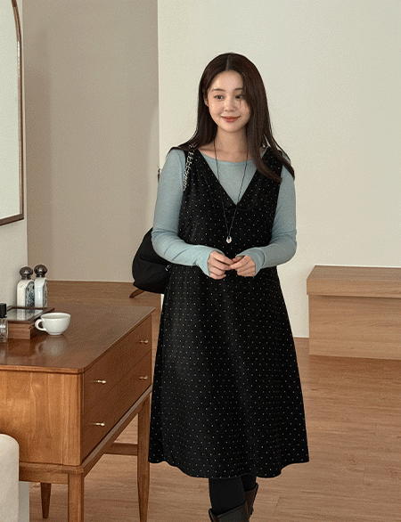 스핑 絲絨 圓點 뷔스티에 洋裝 85758