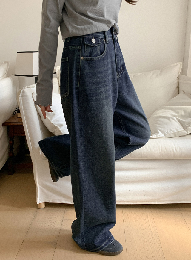 로트리 水洗 寬 牛仔 褲 85844