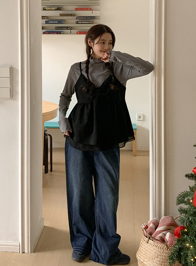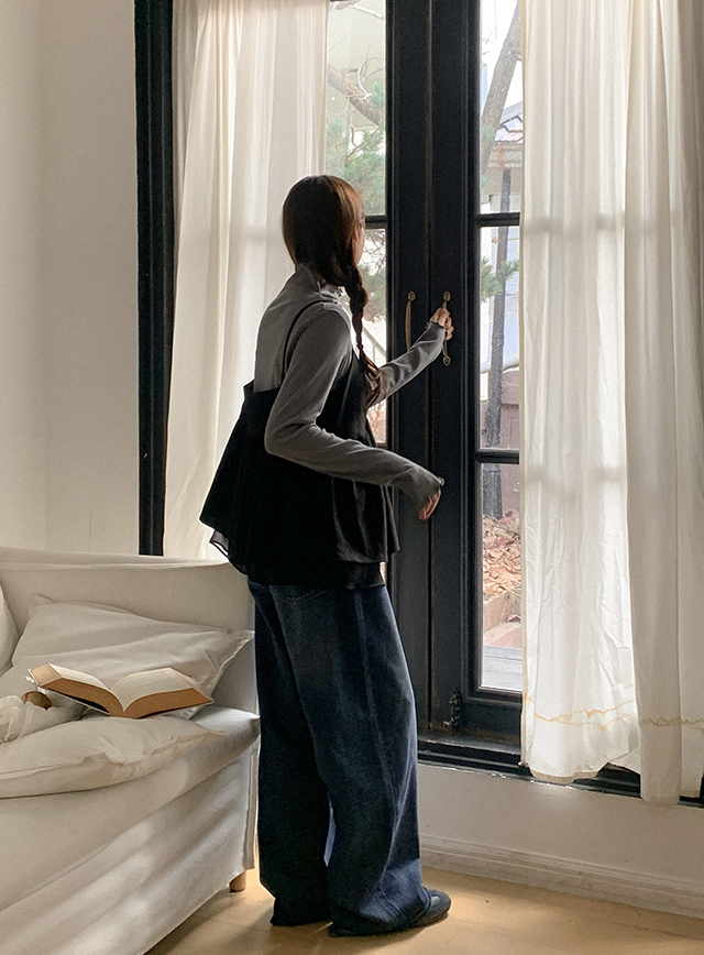 델케이 잔골 褶皺 高領 T恤 85842