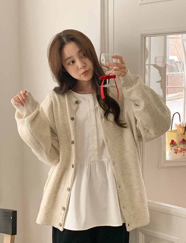 가볍게 툭 입는 寬鬆 圓領 羊毛 開襟外套 85823
