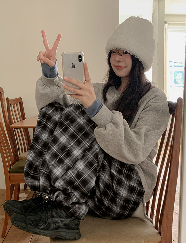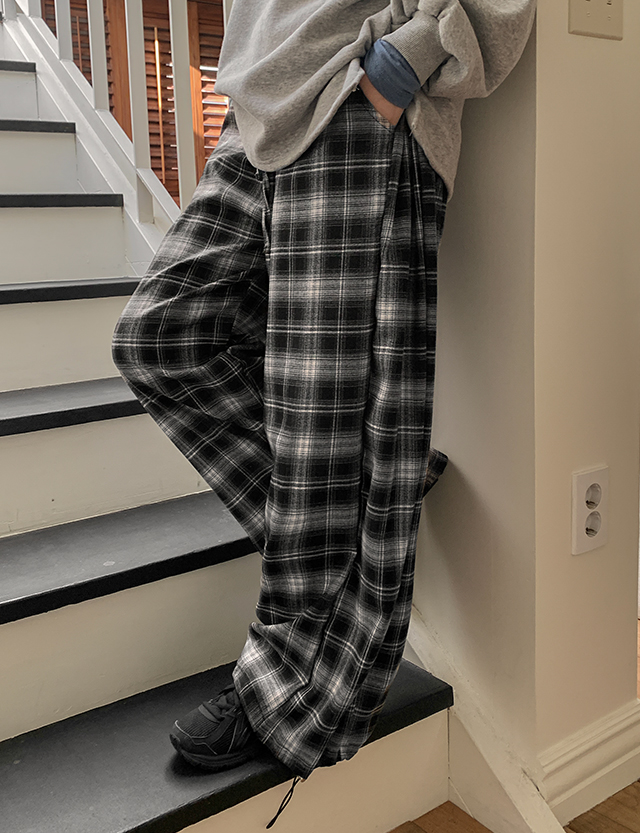 프딘 겉기모 鬆緊腰 格紋 2WAY 寬褲 85865