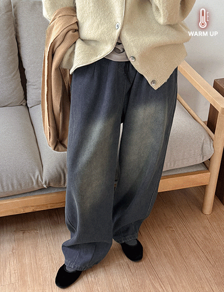 댈루 鬆緊腰 加絨 寬 牛仔 褲 85910