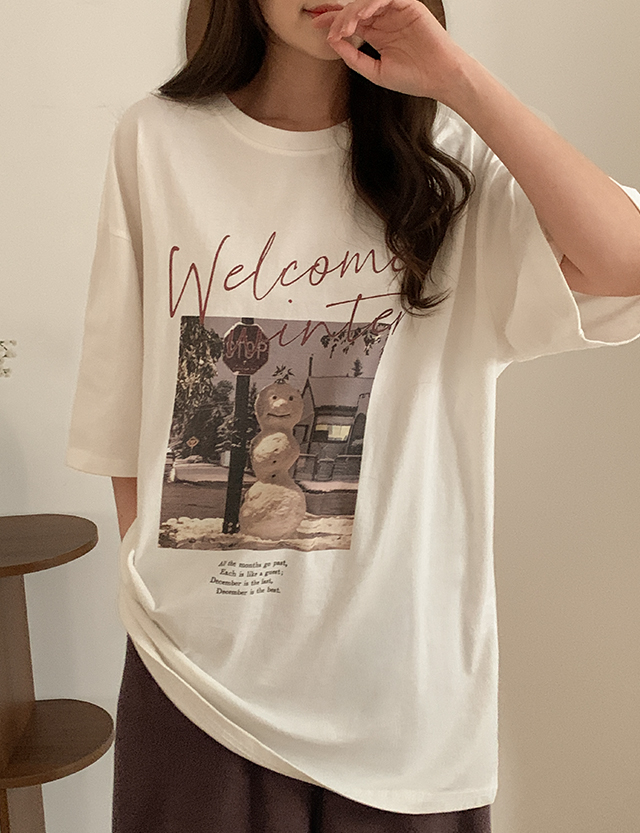 로비아 寬鬆 印花 겉기모 短袖 T恤 85848
