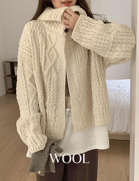 쥬리페 羊毛 大衣領 케이블 鈕扣 오픈 開襟外套 85847