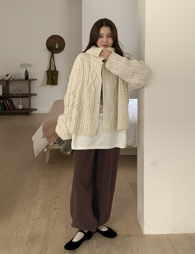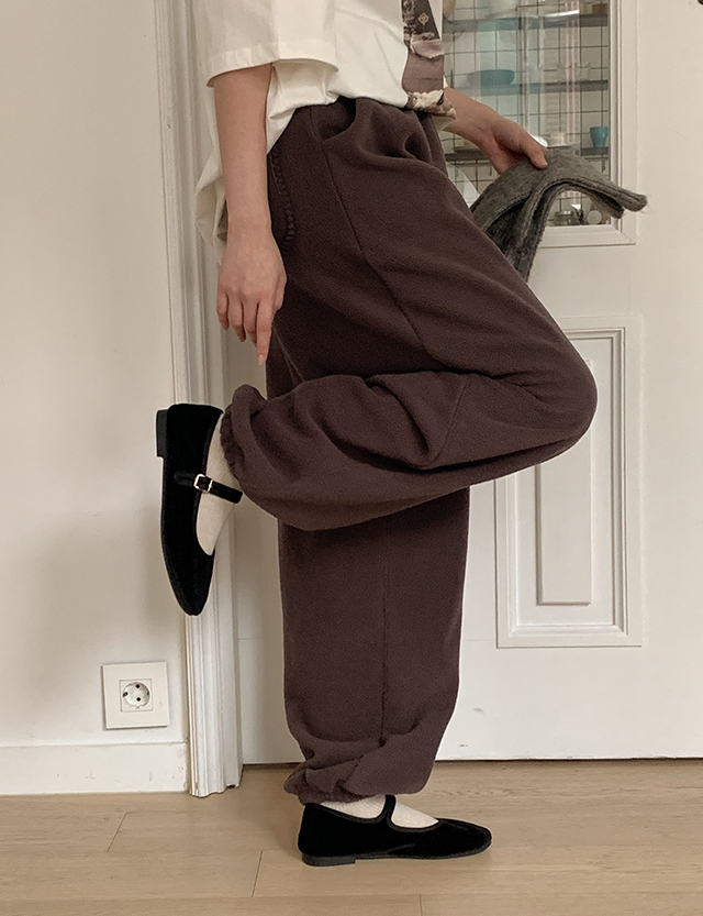 베베링 搖粒絨 鬆緊腰 寬 束腳褲 85849