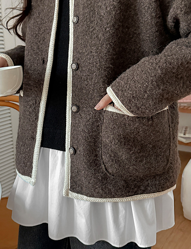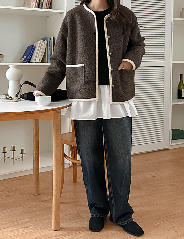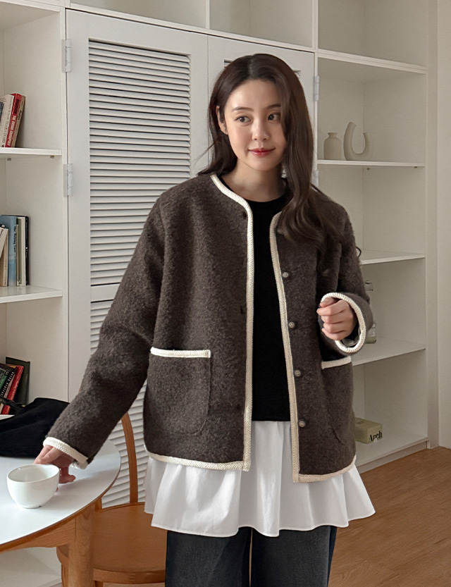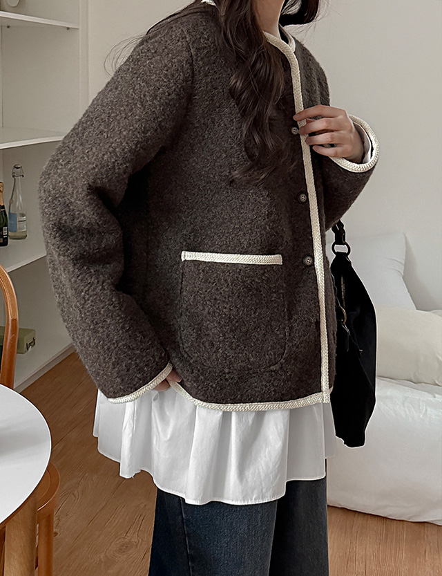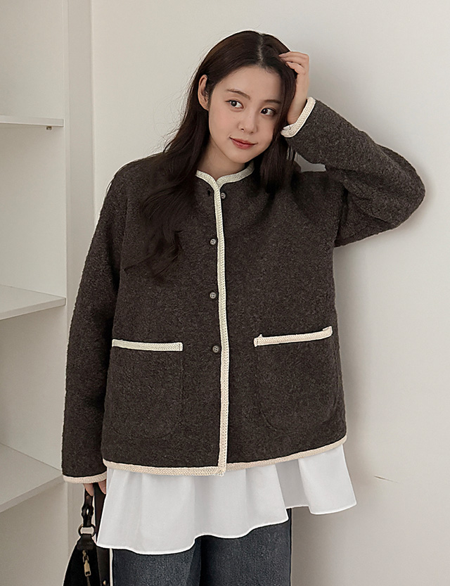 쿠쿠슈 配色 純色 羊羔毛 外套 85936