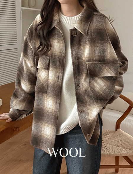 패트링 톡톡 羊毛 格紋 寬鬆 襯衫 85938