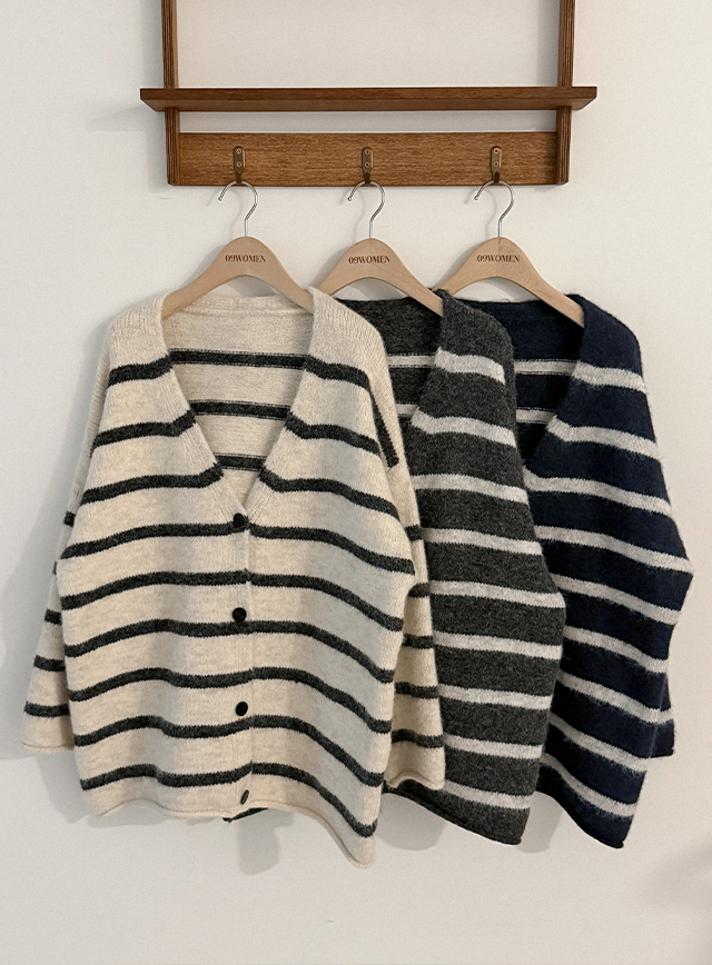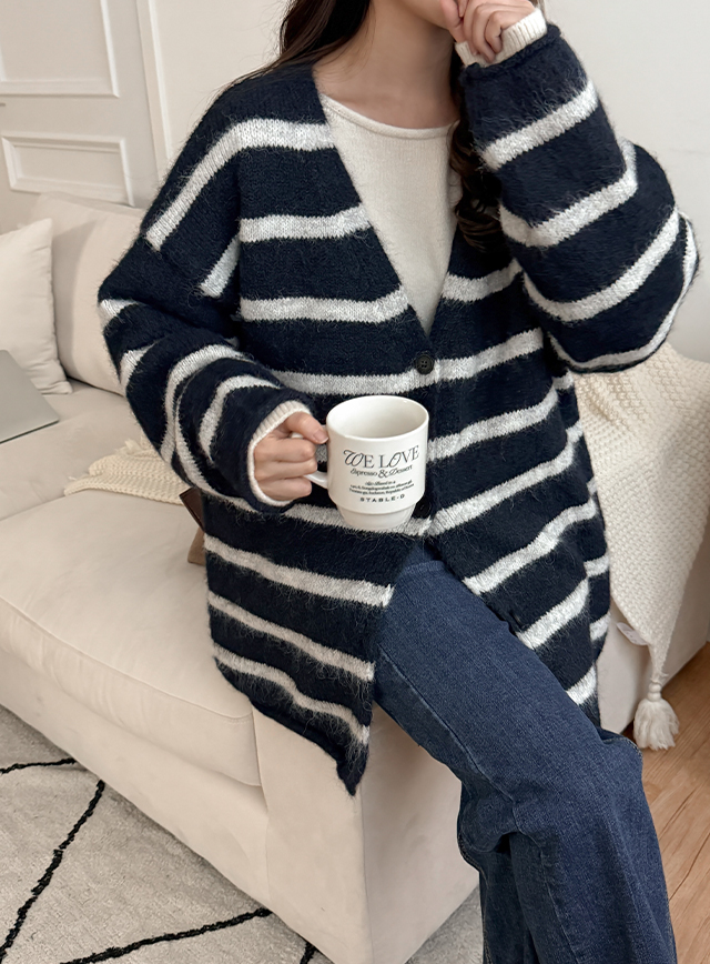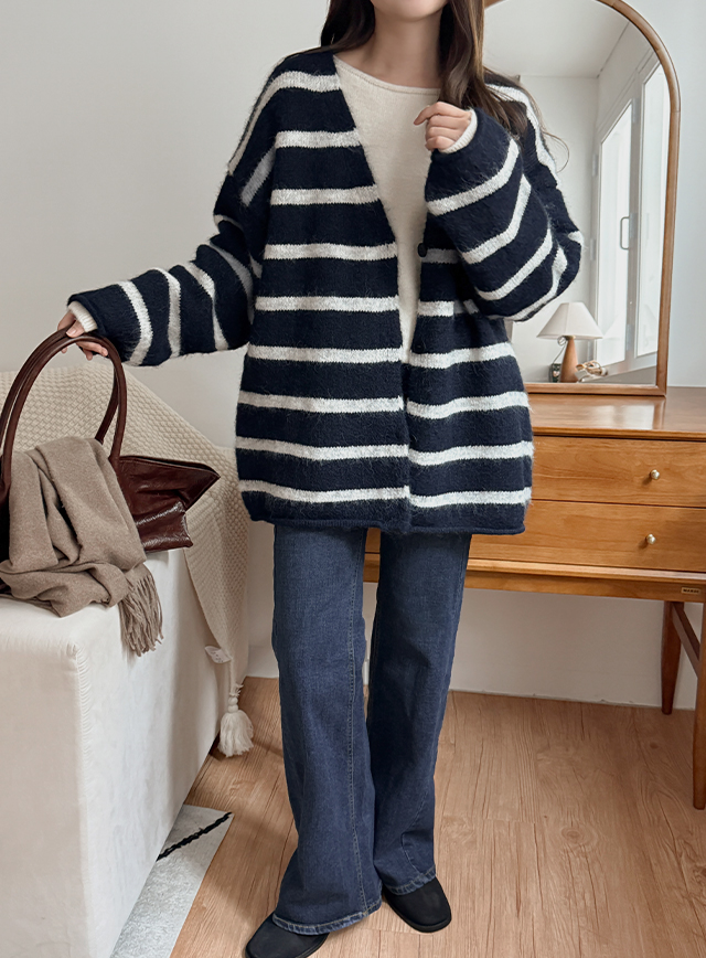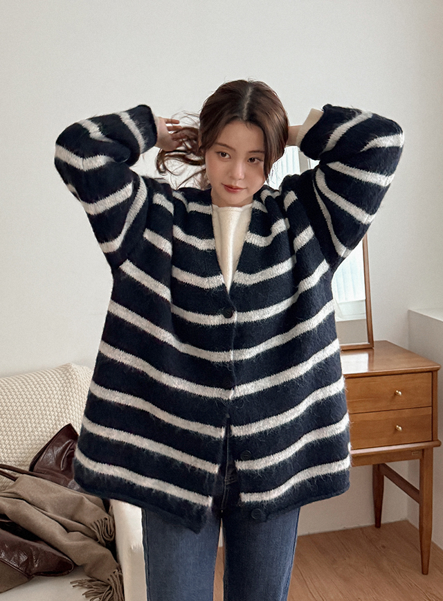 앤드릴 寬鬆 條紋 V領 開襟外套 85931