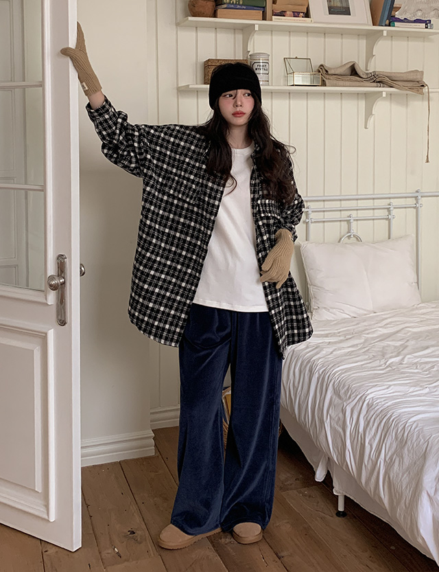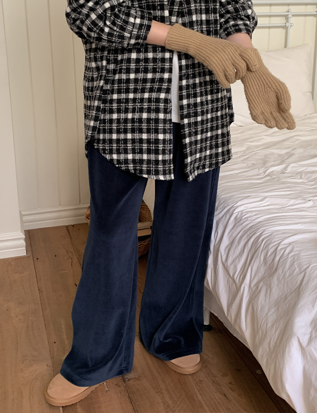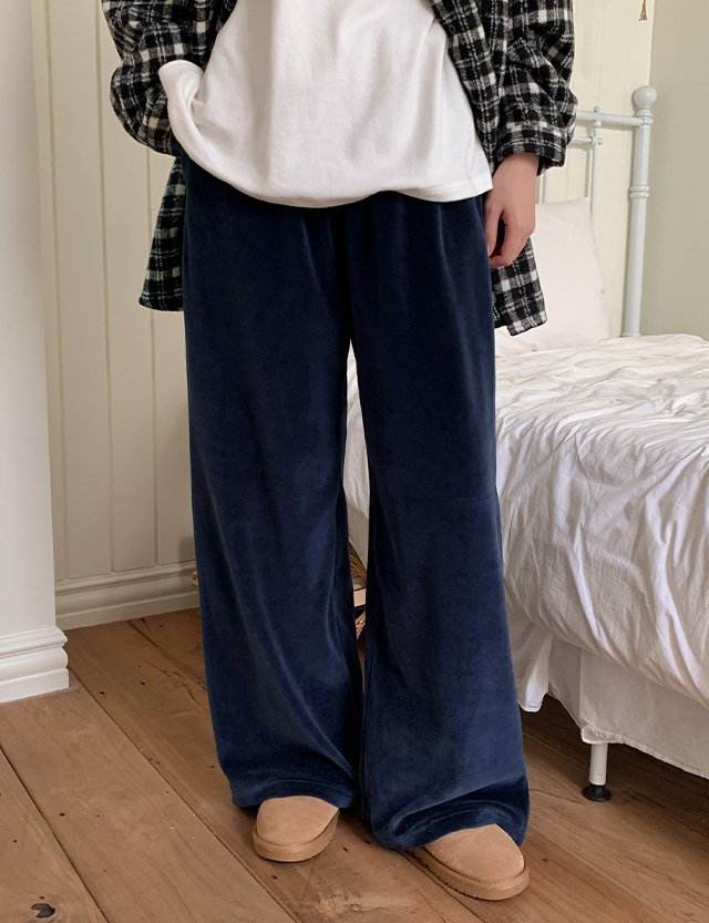 라에 도톰 絲絨 鬆緊腰 寬褲 85876