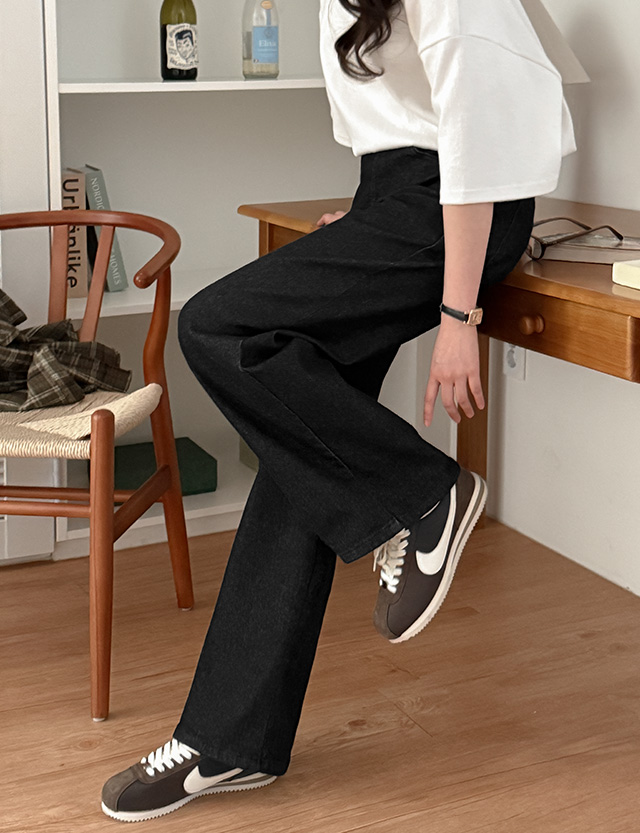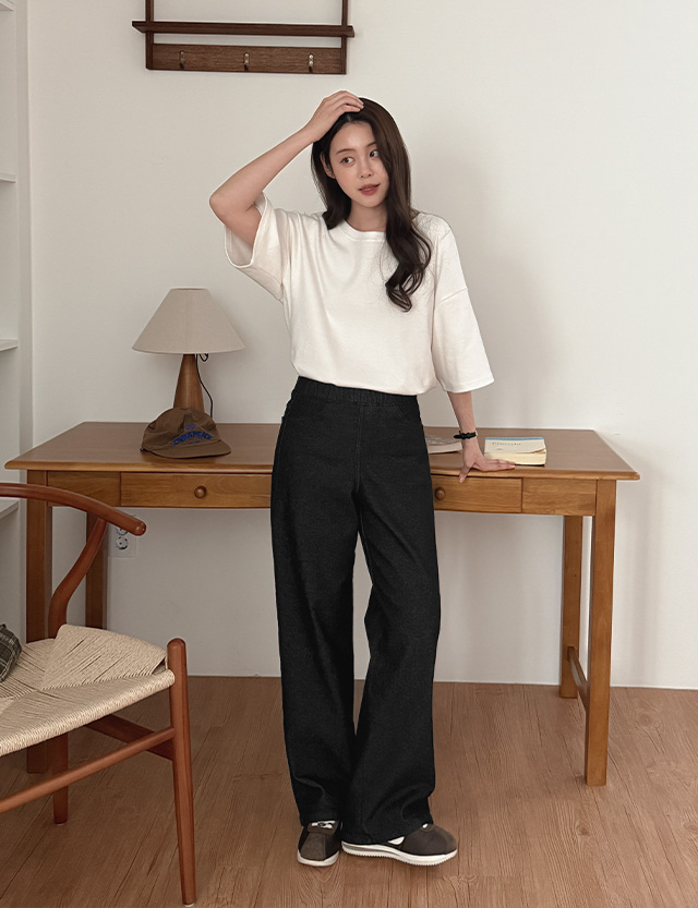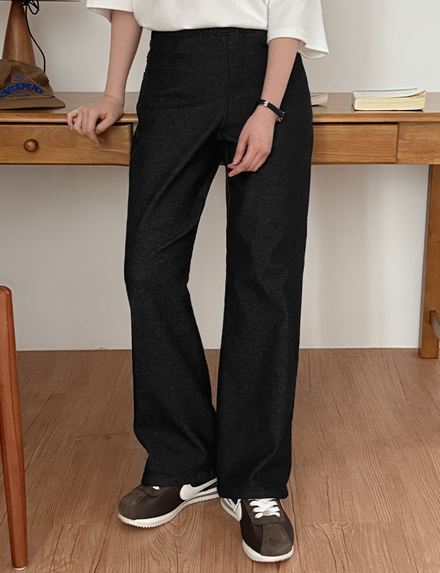위시프 鬆緊腰 彈力 加絨 寬 牛仔 褲 85942