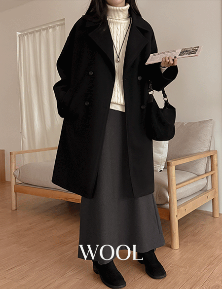 트러스 雙排扣 鋪棉 長款 羊毛 呢子大衣 (2唡) 85886