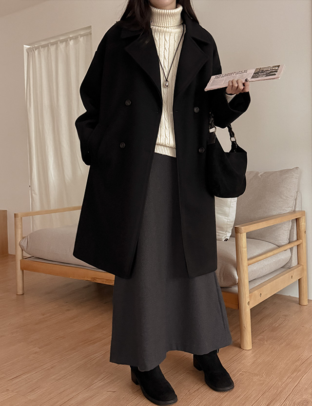 트러스 雙排扣 鋪棉 長款 羊毛 呢子大衣 (2唡) 85886