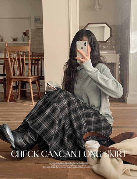 로하 겉기모 格紋 荷葉裙 鬆緊腰 長裙 85871