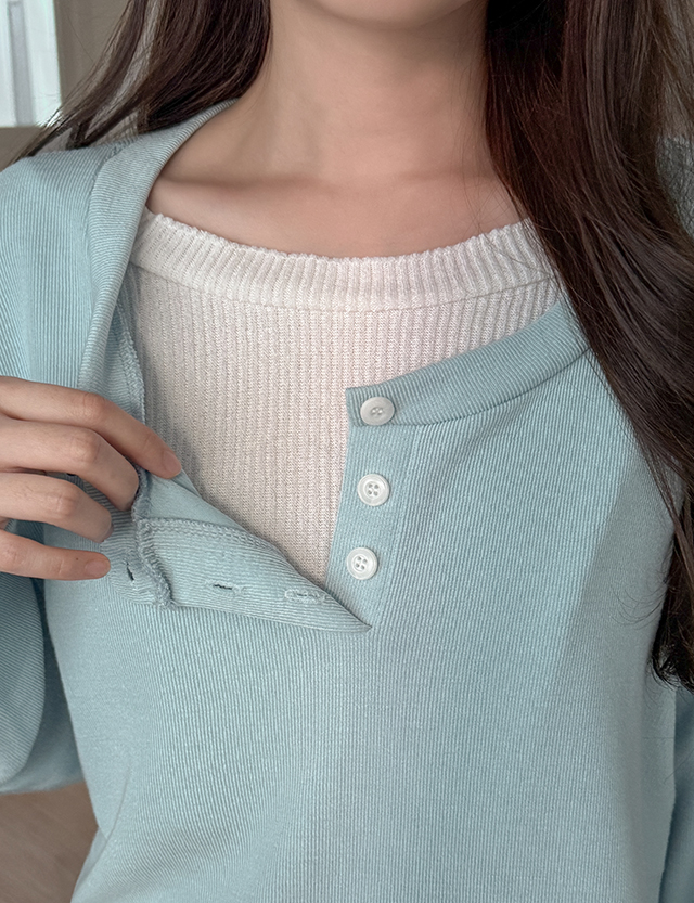 시에브 分層 鈕扣 羅紋 T恤 85991