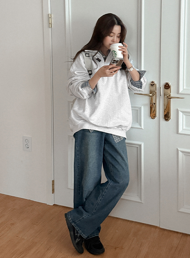 어센틱 刺繡 半拉鏈 運動衫 85981