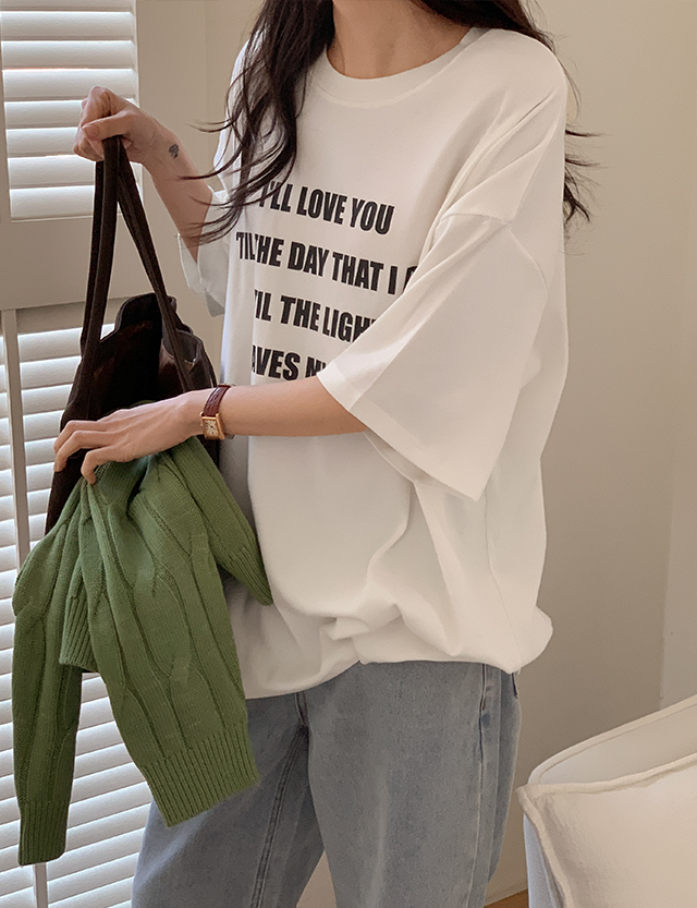 차르르 寬鬆 柔絲 字母印花 短袖 T恤 85960